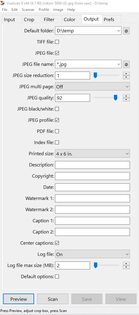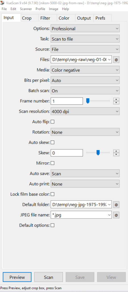Step 2: Make JPG files from Vuescan RAW files