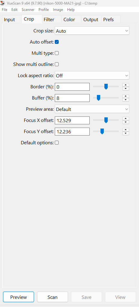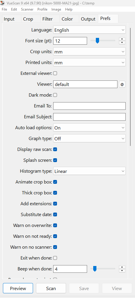 Advanced Vuescan settings